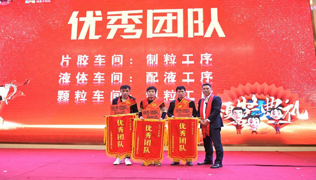 会议在庄严神圣的《中华人民共和国国歌》和激情高亢的《中国尊龙凯时》歌声中拉开序幕。全体员工现场观看了尊龙凯时企业宣传片《尊龙凯时之梦》和集团公司2019年度的回顾短片《尊龙凯时2019年十大关键词》,资本运作、中药精品、营销铁军等关键词,催人奋进,激荡人心,让在座的每个人心潮澎湃,斗志昂扬!会议中,广西维威制药有限公司总经理韦天宝先生作了公司2019年度的工作总结,并对2020年的工作作了详细规划。会议还表彰了2019年度的先进个人、优秀管理者、优秀团队和优秀部门,共有47名先进个人、3个优秀团队和1个优秀部门受到表彰。